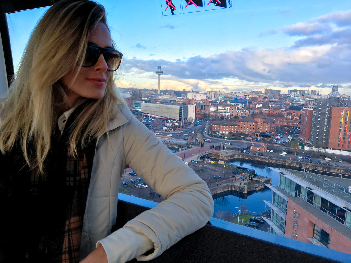 Quando chegamos ao Albert Dock o dia estava lindo e essa parte da cidade fica de frente para o Rio Mersey, levamos um cadeado que foi comprado no Brasil e as fitinhas do Senhor do Bonfim. Também andamos na roda Gigante de Liverpool, que tem 60 metros de altura e começou a funcionar em 2010.